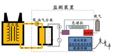 变压器油中溶解气体在线监测装置,主要由油循环、真空脱气、气体进样、组分气体分离、气体检测、载气制作、数据采集、数据处理、专家诊断和通讯协议等环节构成。