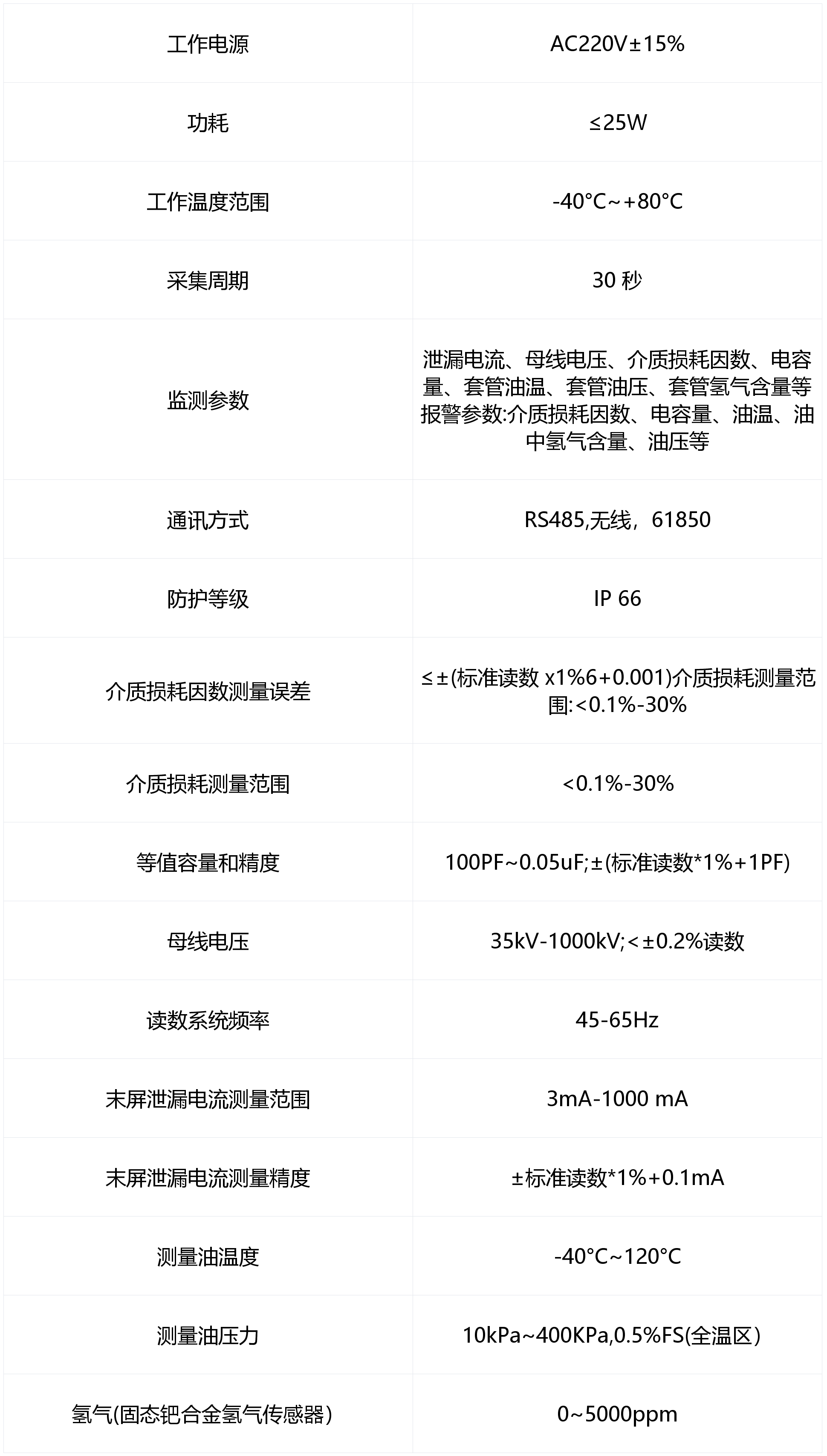 - 油中气体含量及 4~20mA 电流数据检测功能;