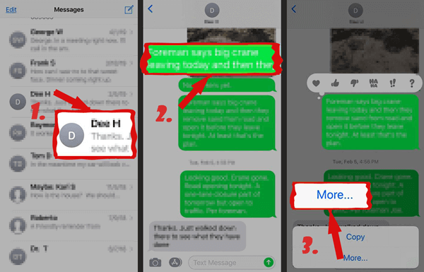 步骤 2. 长按消息,然后选择"更多"。