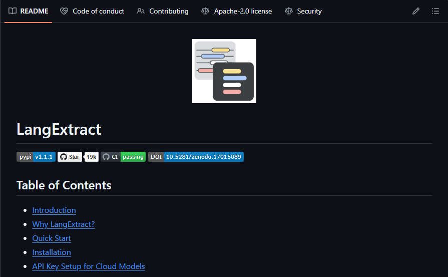 为解决上述问题,Google 开源了 LangExtract。这是一个 Python 库,其核心使命可以用一句话概括:利用大型语言模型,将非结构化文本转换为结构化数据,并确保每个提取结果都精确对应回原文位置。