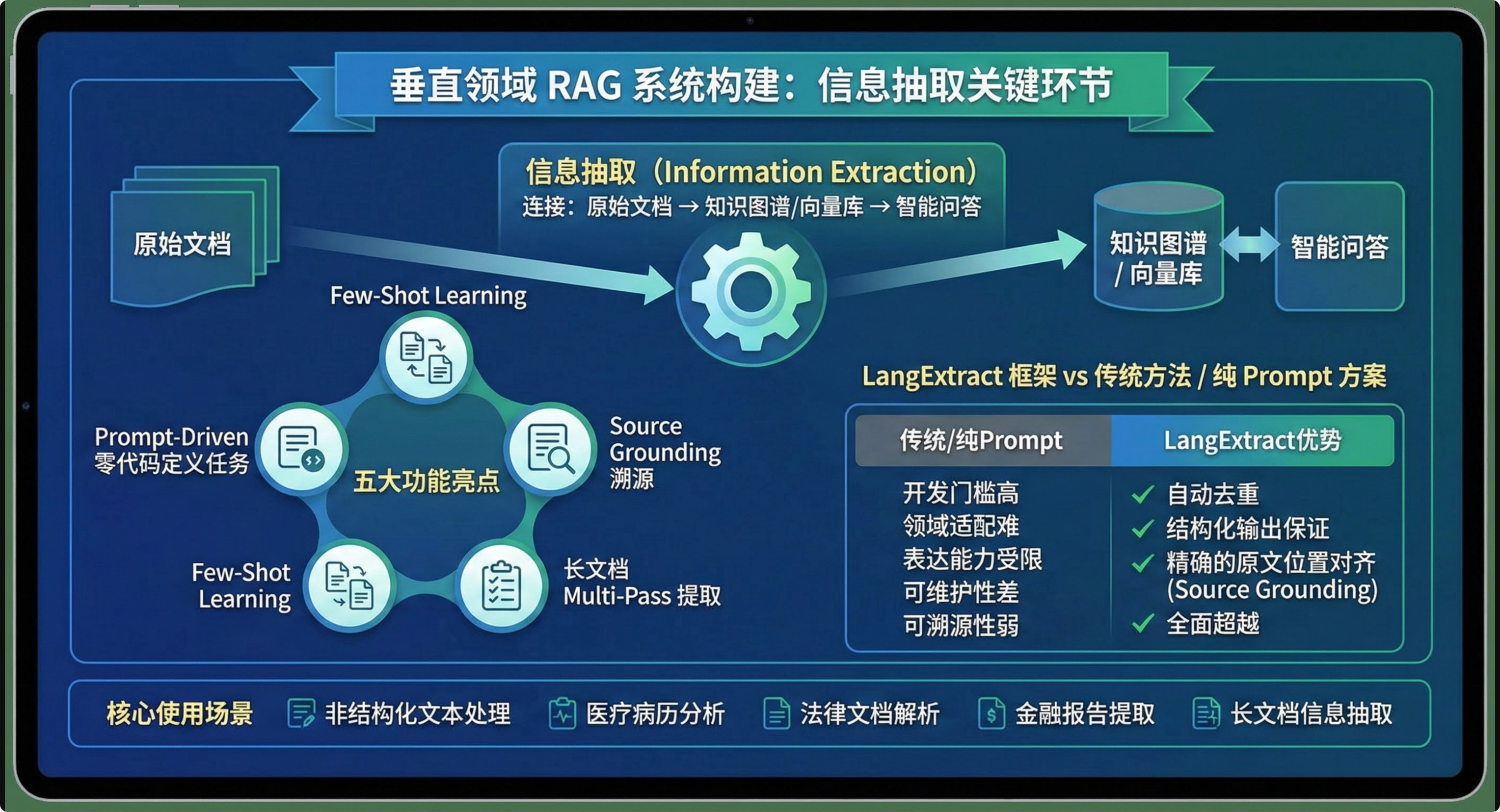 - 核心使用场景:非结构化文本处理、医疗病历分析、法律文档解析、金融报告提取、长文档信息抽取
