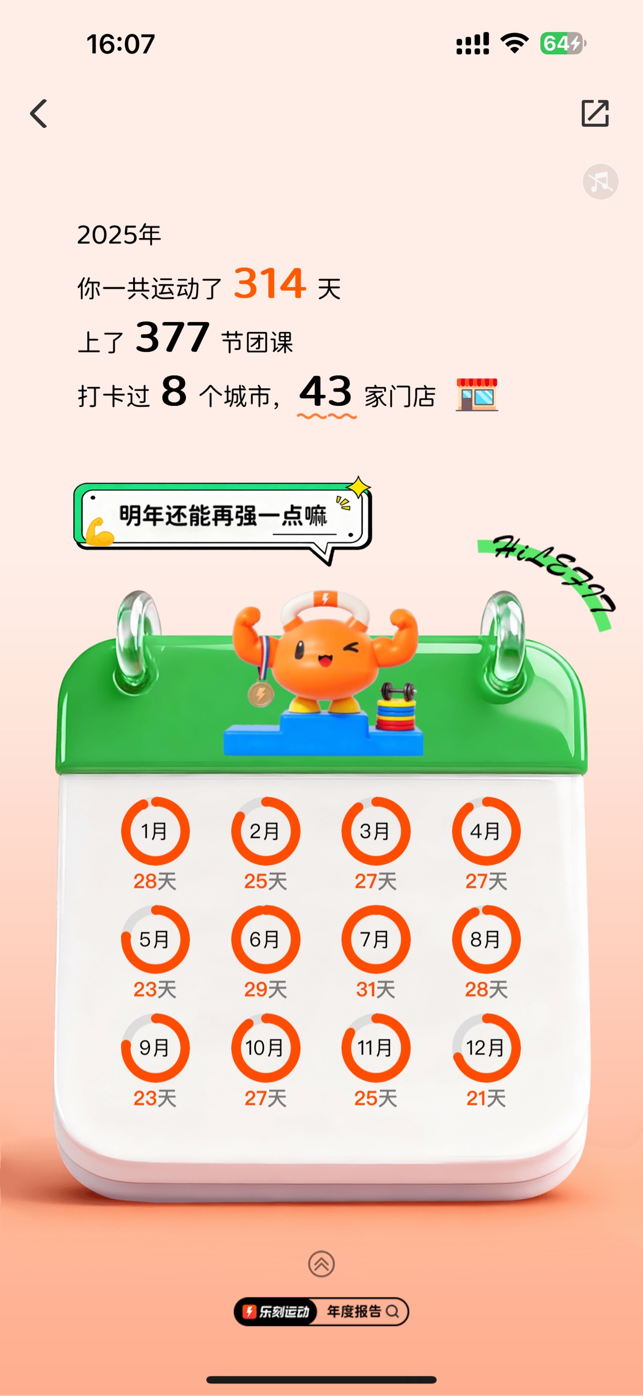 不知不觉成了团课里的"卷王",却几乎没感觉到时间的流逝。以六六教练的 BP 为 2025 收尾,刚好。期待下一年,更有力量、更有厚度的我们。