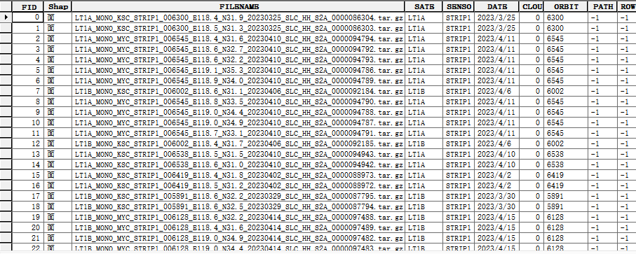 最近我收到这样一个需求:现有5000多个SAR影像的图幅覆盖矢量文件,但属性信息几乎无用(如下图所示)。如何仅通过图幅的矢量几何信息来区分升降轨道?这确实是个让人头疼的问题!