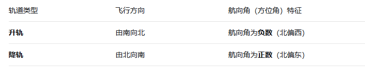 当卫星由南向北飞行(升轨)时,轨迹线向右下方倾斜,斜率为负
