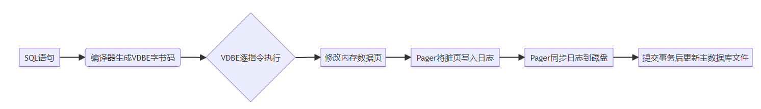 - SQLite采用分层设计,由编译器、虚拟机与后端存储三大子系统构成,各层独立协作。