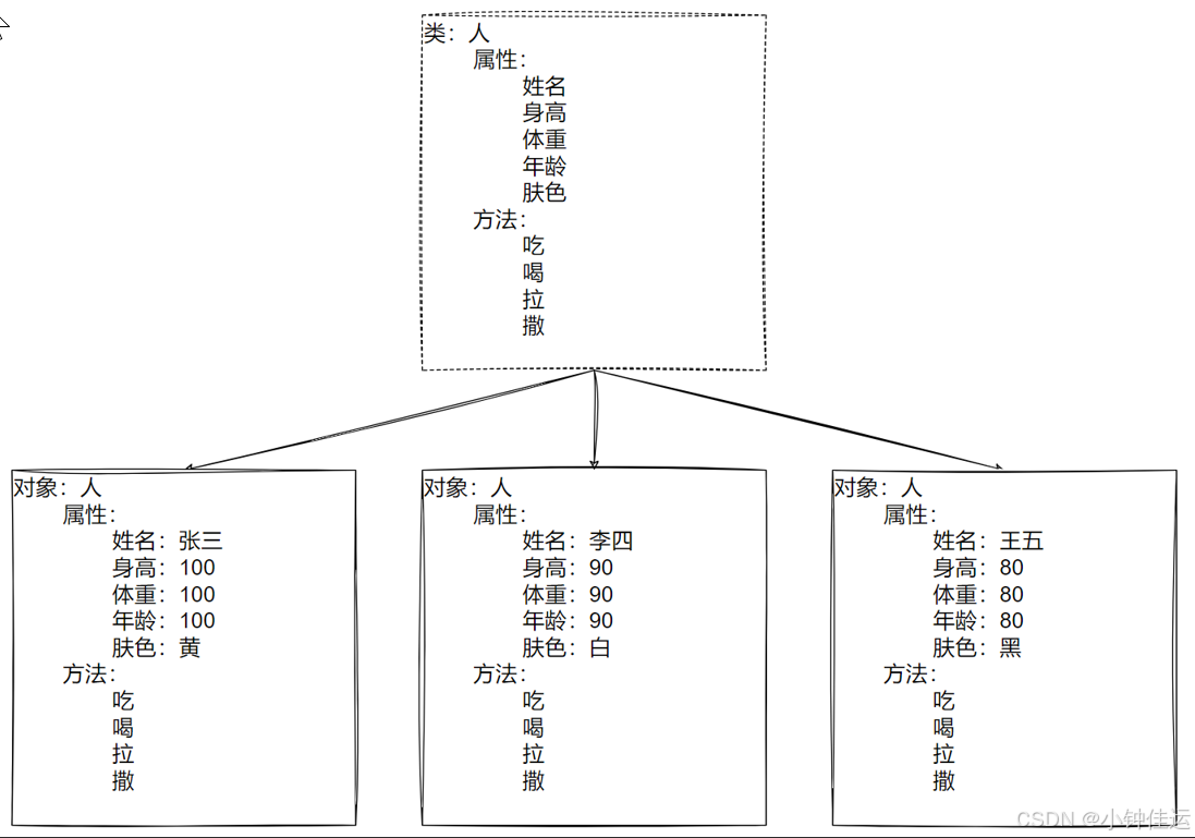 类是抽象的,对象是类的实例(Instance),是具体的。