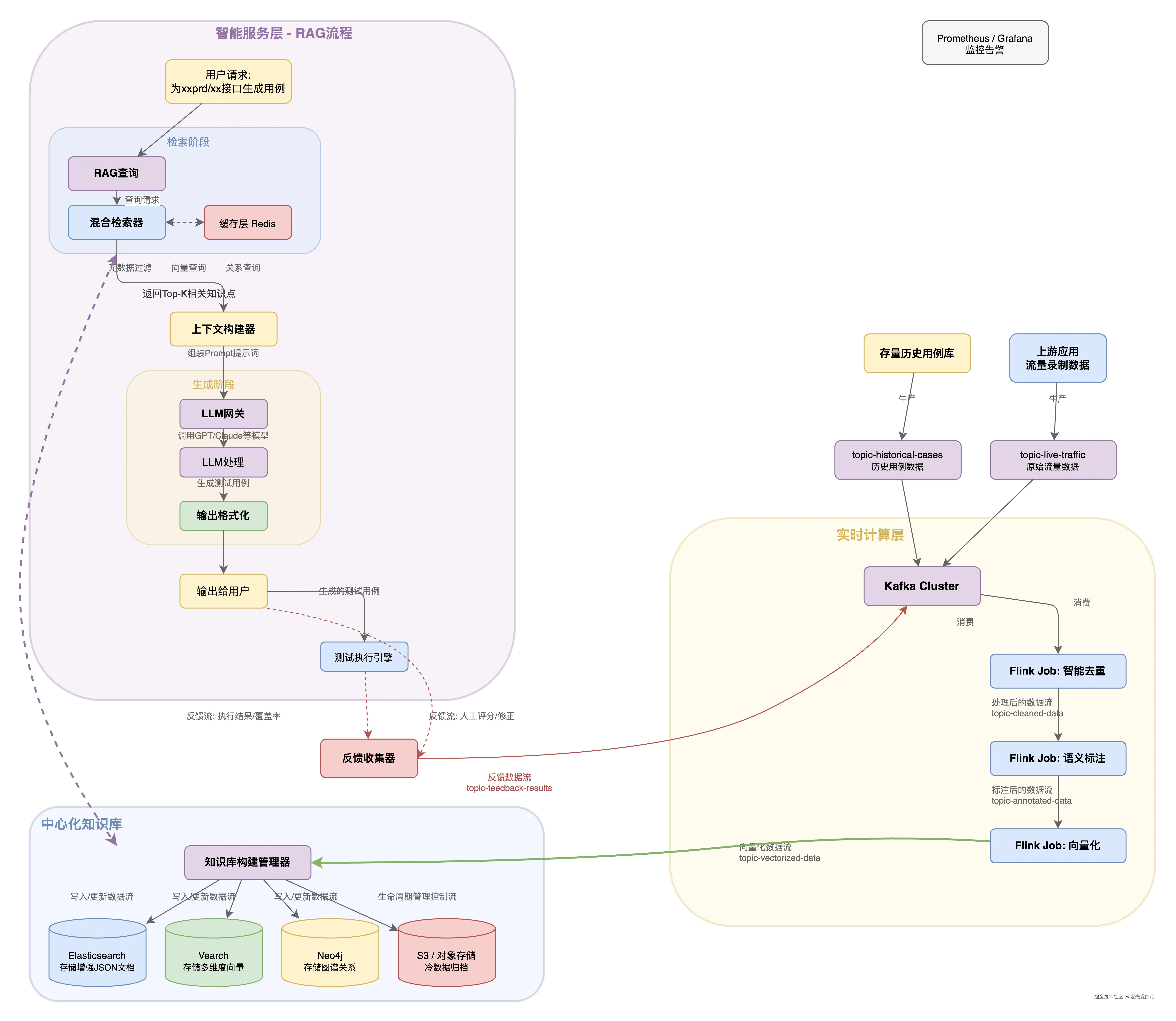 我涉及的场景是测试领域------需求文档、接口文档、历史测试用例、业务规则......这些知识散落在各个系统里,格式不一,质量参差不齐。直接丢给大模型,它根本理解不了。所以第一件事,是搭建一套企业级的知识库。