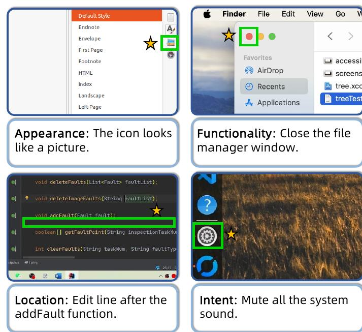 我们关注指令的多样性,并揭示了一个根本性的不匹配:人类可以在多种指令视角中灵活地选择最有效的途径,而目前的模型则以狭隘、固定的风格进行训练。例如,为了表达诸如"关闭窗口"之类的单一意图,人类可能会根据其外观("点击红色X")、功能("关闭文件管理器")、空间位置("右上角的按钮")或高级意图("去掉这个屏幕")来描述相应的UI元素。人类有策略地在这些视角之间切换,为手头的任务选择最有效的描述,如图3所示。我们在第2.1节中的定量分析同样表明,利用指令多样性是提高定位准确性的关键。然而,目前流行的GUI定位模型通常被训练为将单一的指令风格映射到一个动作,在跨不同视角进行推理的能力有限。这种局限性构成了GUI定位任务灵活适应性和稳健解释的关键瓶颈。