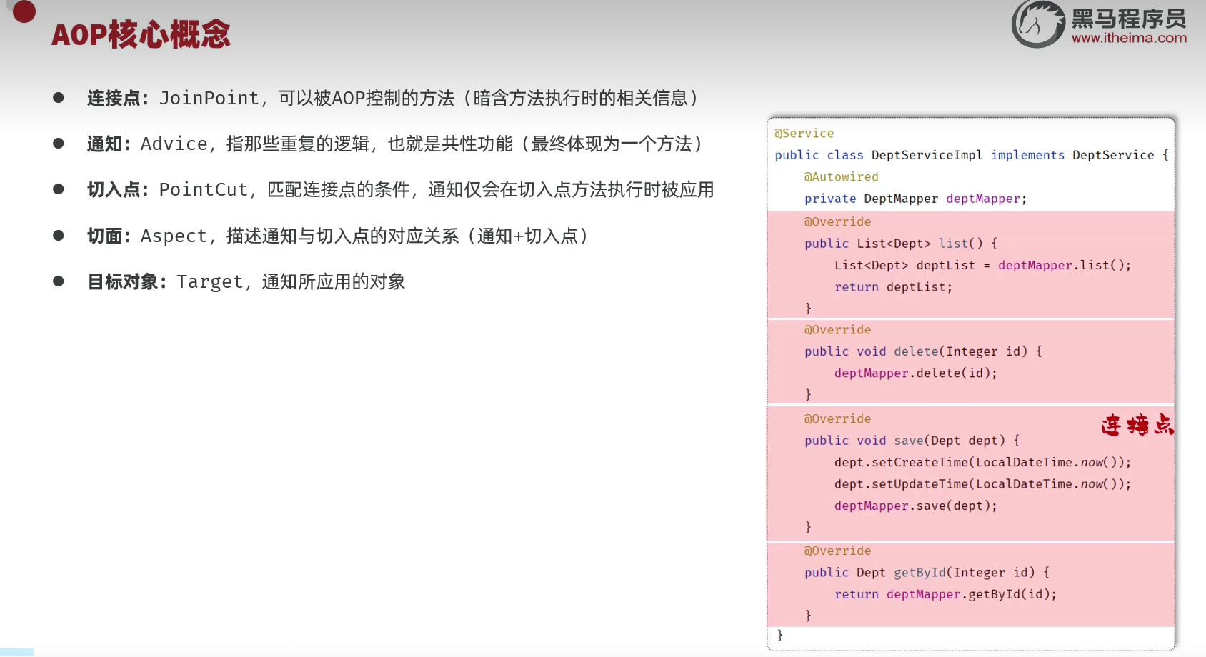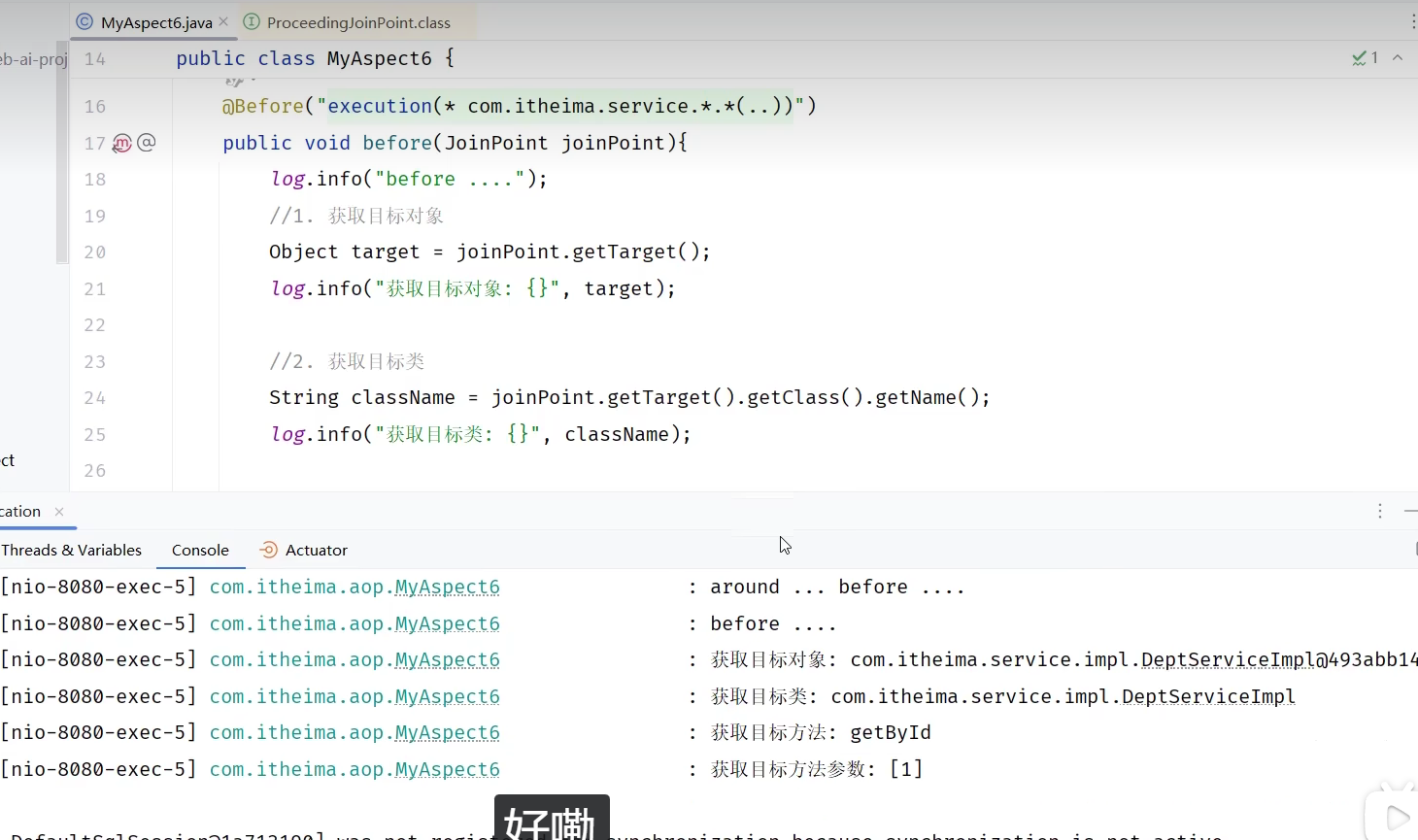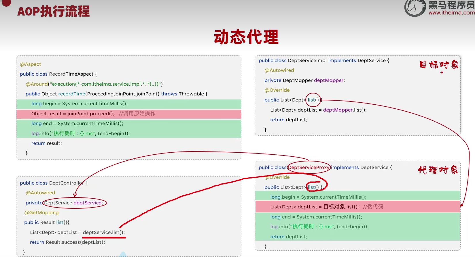 运用动态代理技术实现,创建了DeptServiceProxy代理对象,从而实现AOP的应用