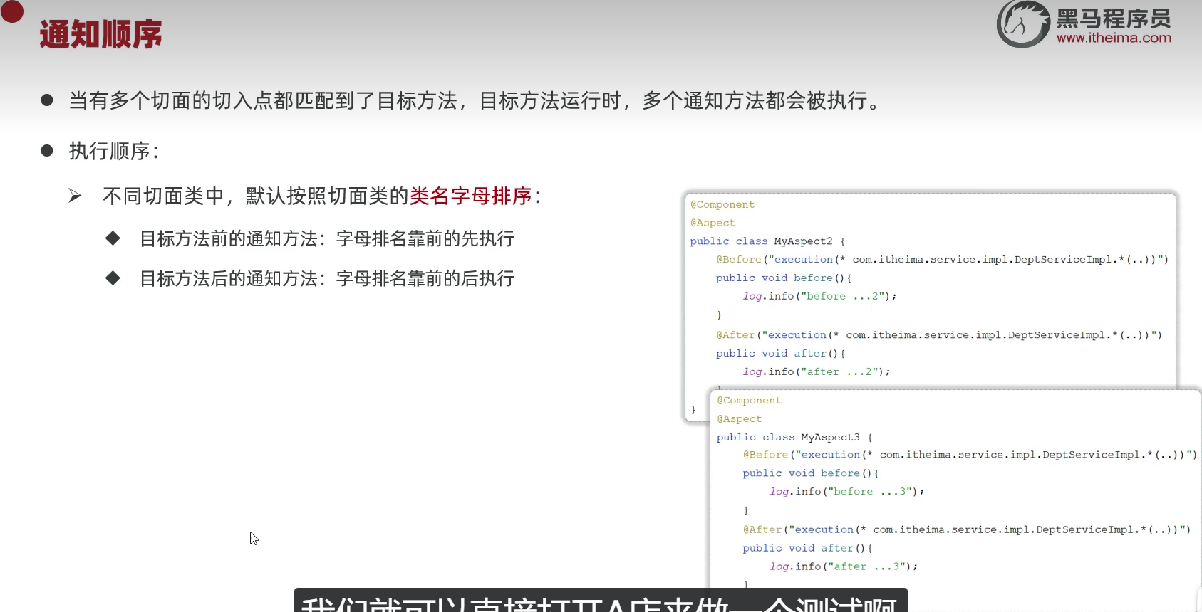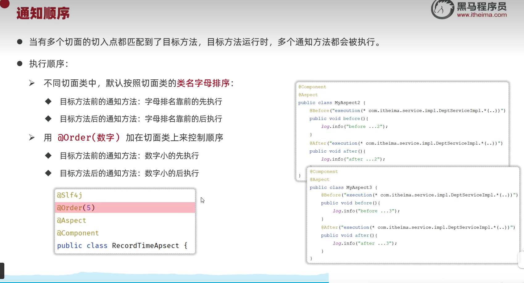可以通过@Order关键字来确定各个切面类前置通知或后置通知的顺序