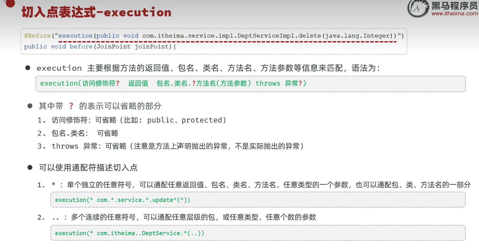 @Pointcut("execution(* com.itheima.service.impl.*.*(..))")