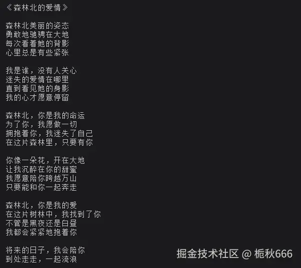 console.log('✅ 成功生成歌词:\n' + song);