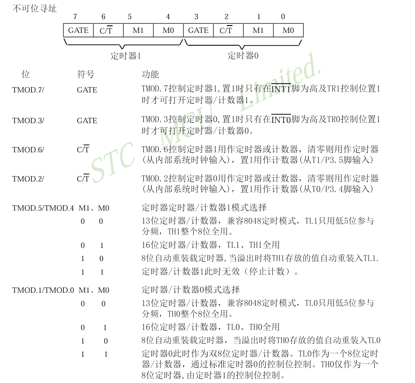 这里简单说明一下为什么让TMOD进行与或操作,因为TMOD是一个不可寻址的变量,也就是我们不能单独控制一个位的值,只能同时控制整个TMOD的值,那么反过来,像之前控制单个LED灯闪烁的就是可寻址变量。