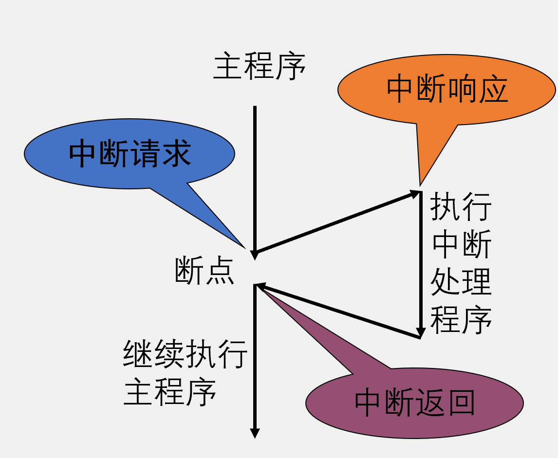 这里的机制就是,响铃响起,中断产生,CPU优先处理中断指向的任务(改变方向),回去继续处理中断前的任务(流水线)