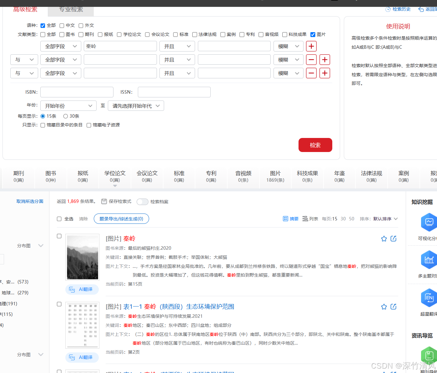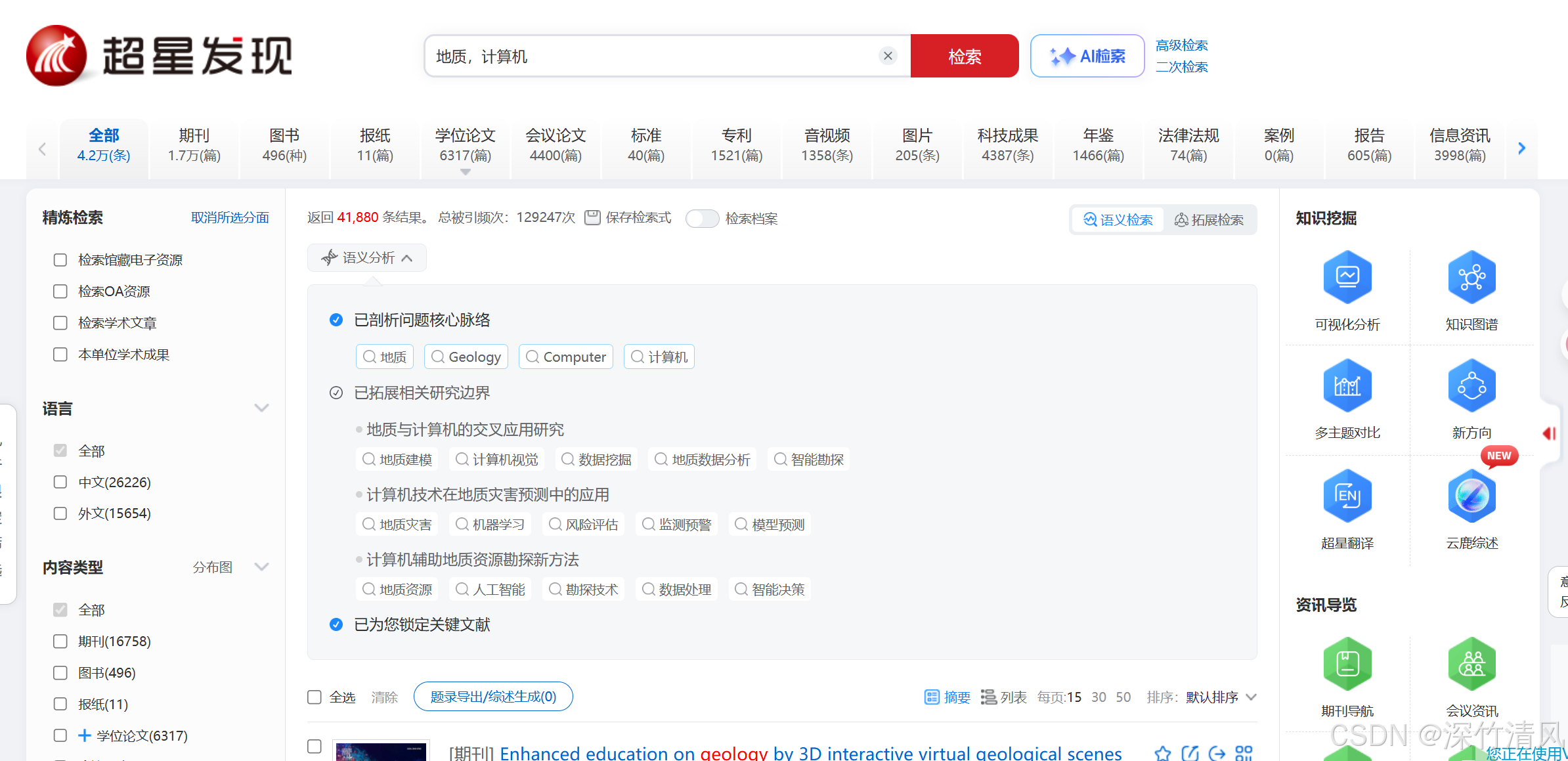 除了有正常检索外,还有AI检索。