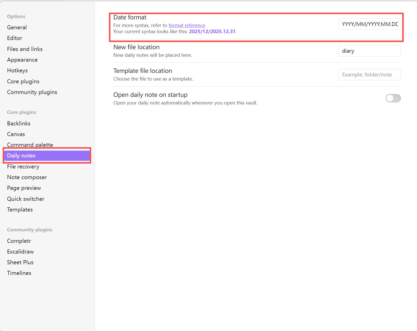 如果你想以月为单位管理,且日记名称以 年.月.日 为格式创建。可以设置为