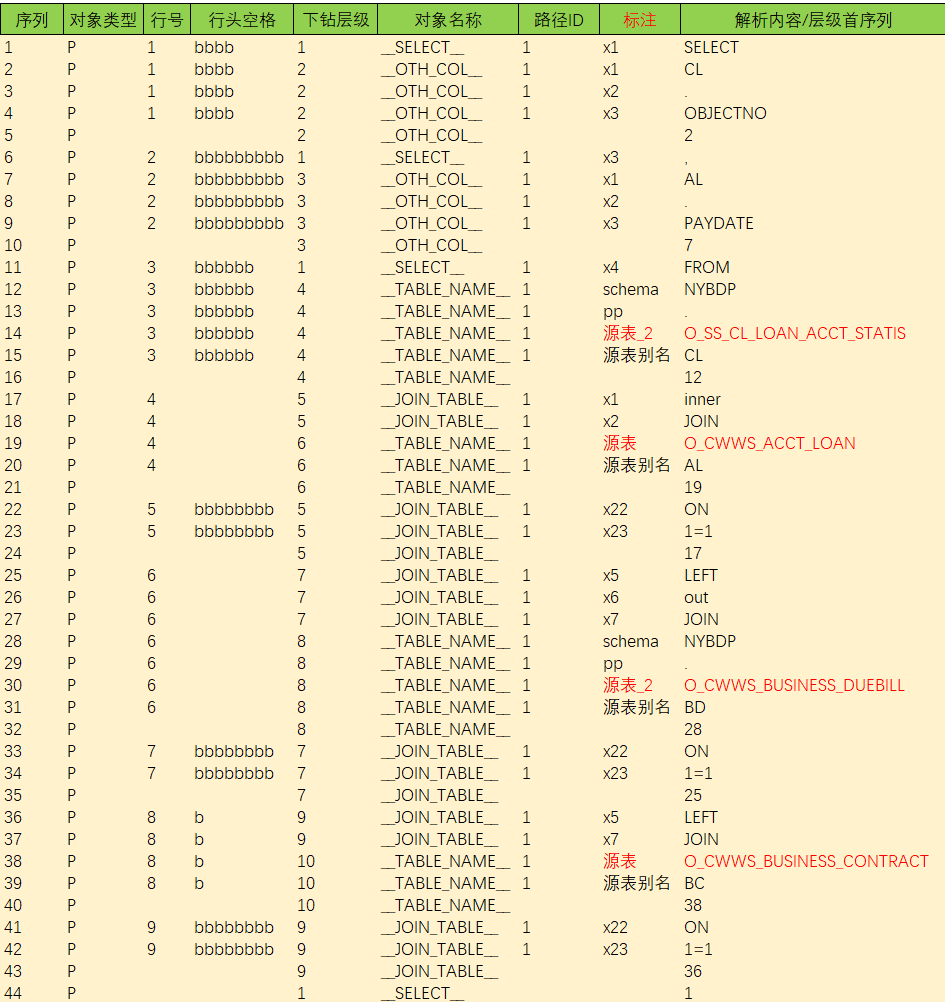 若要提取以上SQL代码中的源表名,可配置语法标注"源表"如下: