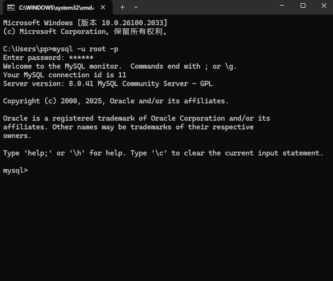 如果成功进入 MySQL 命令行界面,并显示 "Welcome to the MySQL monitor" 字样,说明 MySQL 8.0.41 安装成功。你可以开始使用CREATE DATABASE等命令创建数据库,进行数据管理操作了。
