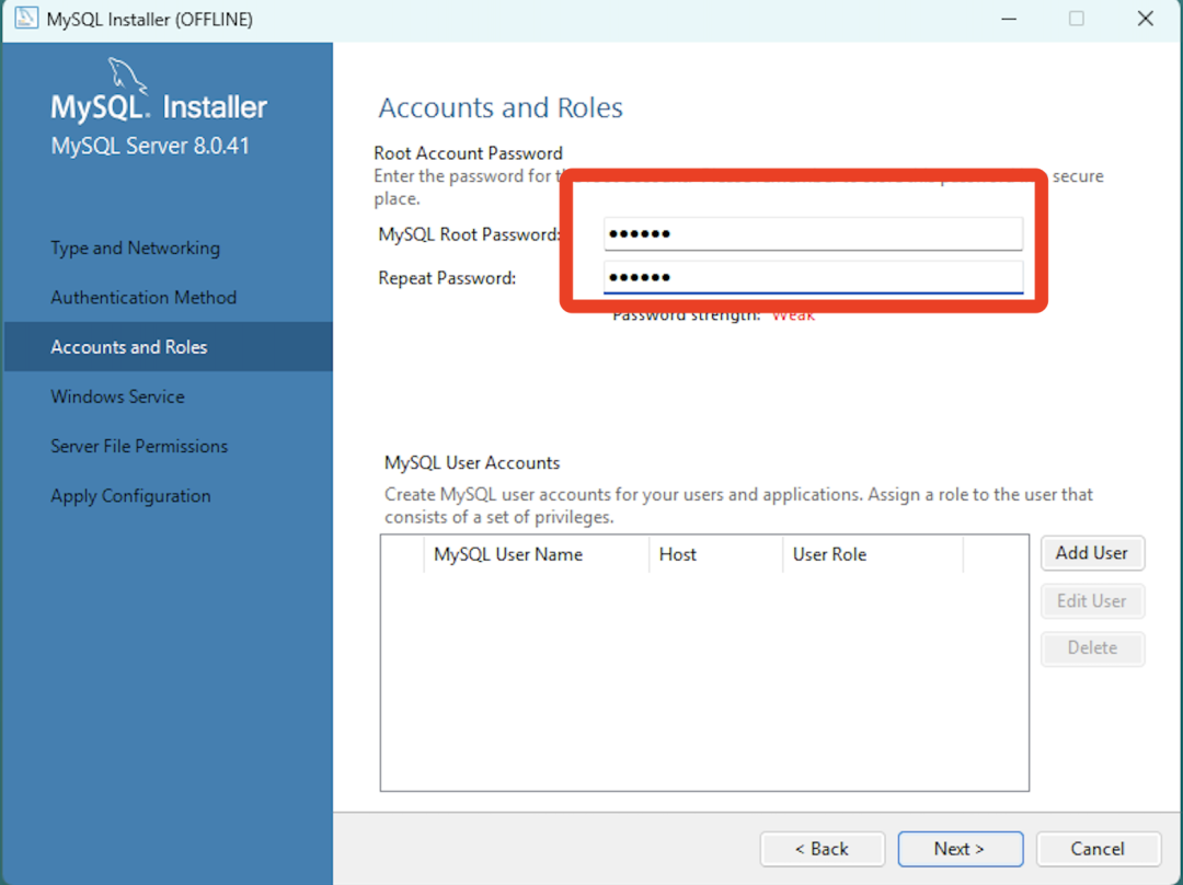 在安装向导的配置页面,选择 "Use Strong Password Encryption"(使用强密码加密),以增强数据库安全性。