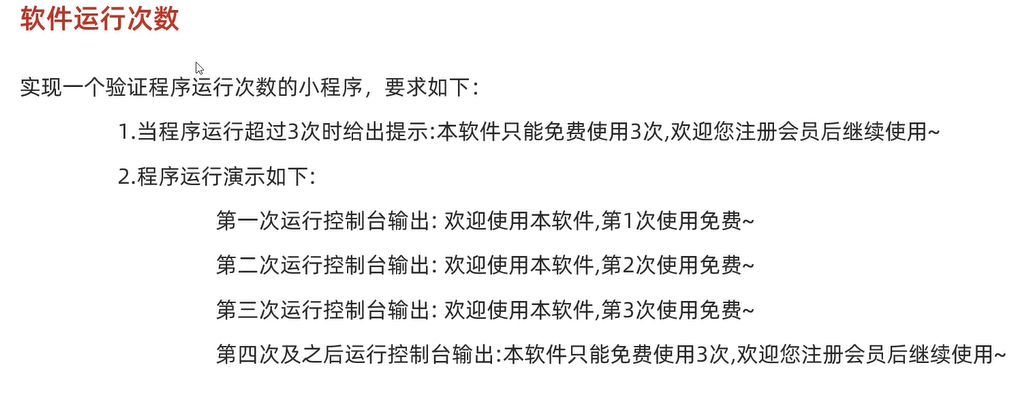 System.out.println("本软件只能免费使用3次,欢迎注册会员后继续使用");