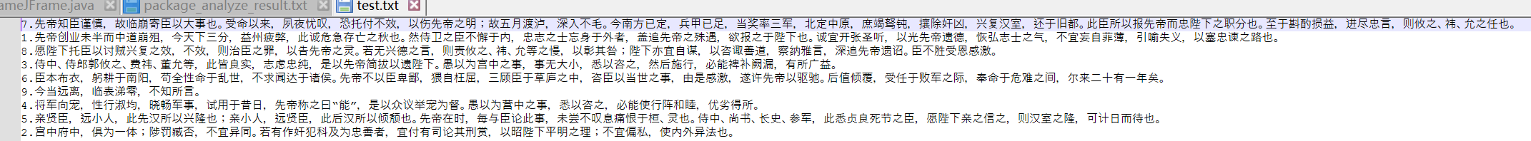 //恢复乱序数据《出师表》