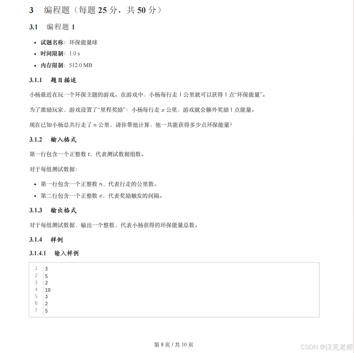小杨一共走了 N 公里,他最后能拿多少能量?