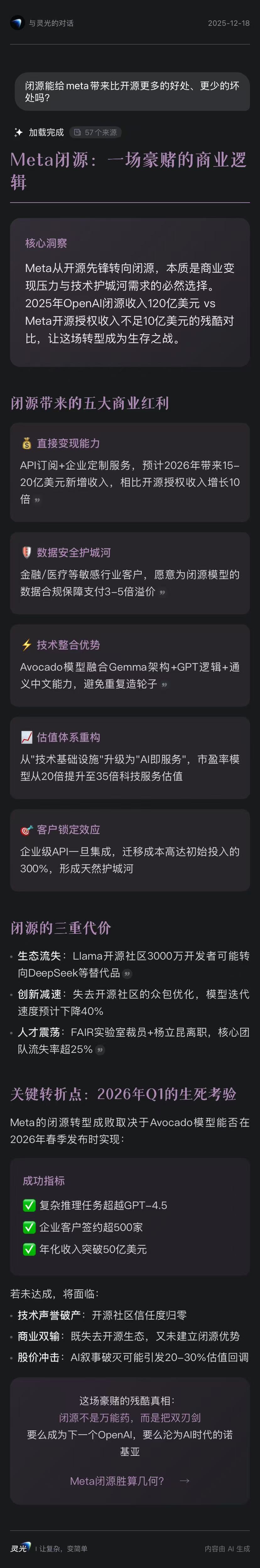 | 高薪挖角 | Meta在2025年多次被报道以天价签约金 或高额薪酬挖角OpenAI和谷歌等竞争对手的核心研究员。 • 多次传闻Meta为挖角OpenAI的核心研究员(如Mark Chen)开出了1亿美元 级别的签约奖金。 • 7月,Meta成功挖角了苹果AI基础模型团队负责人,签约方案涉及2亿美元 的高额薪酬。 • 这些行为导致了行业内部的"人才抢夺战",甚至引发了OpenAI内部的强烈反击。 |