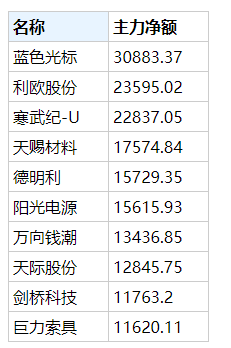 主力净流入最多的是