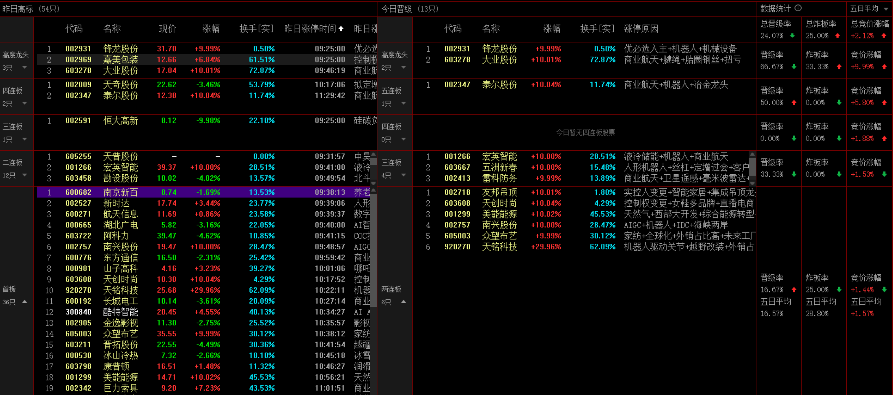 Q5:今日高标股整体表现如何?