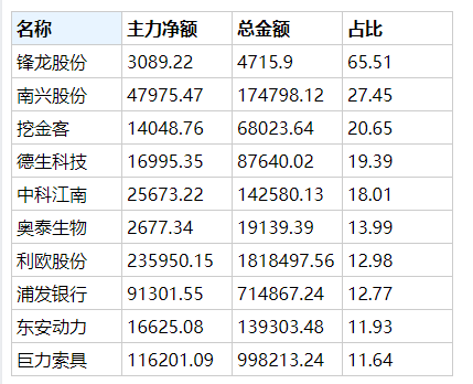 近十日主力占比