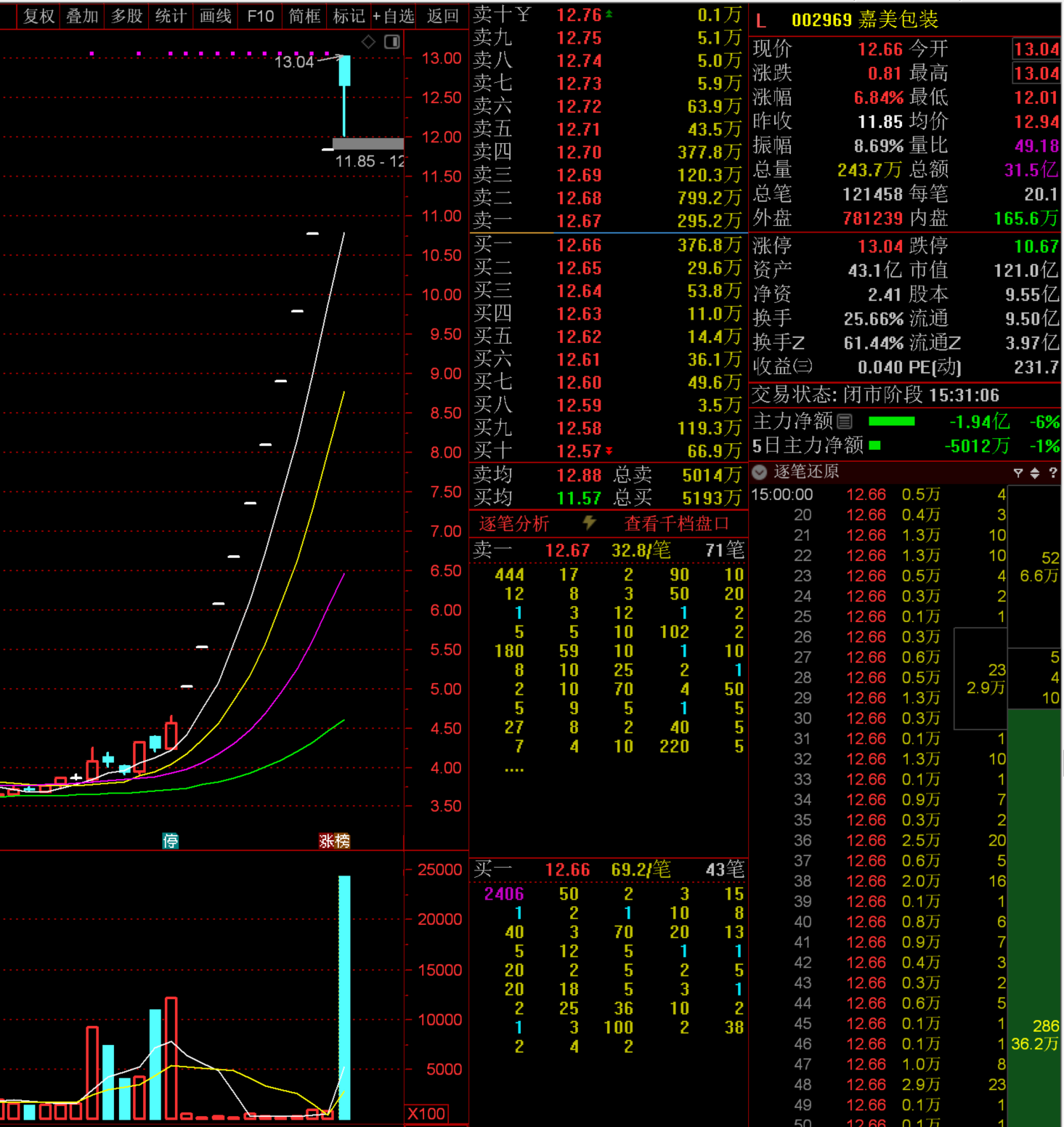 A:昨日最高标 嘉美包装 今日封板回撤