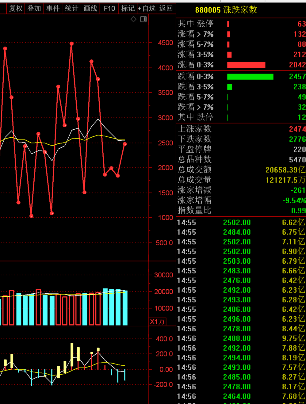 A:今日上涨个股2474家,略小于2500家阈值,短线止赢,只留30% 底仓。