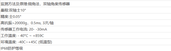 倾角传感器:测量导线偏转角度,结合加速度数据计算舞动幅值(范围0~20m)和轨迹椭圆度