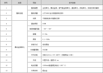 加速度传感器:导线监测三维振加动速度(垂直/水平方向),灵敏度高,频率响应范围 0.1~50Hz,捕捉低频大幅舞动特征
