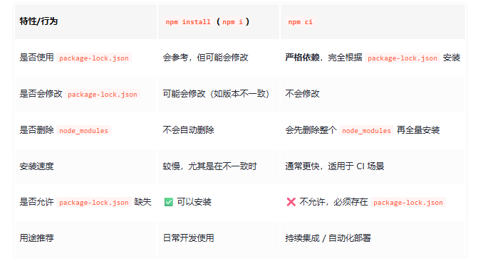 看了一下我的源码里是有package-lock.json文件的,所以应该执行 npm ci,这样可以完全严格按照规定的版本号进行拉取,不用担心由于第三方库更新导致代码方法弃用问题。