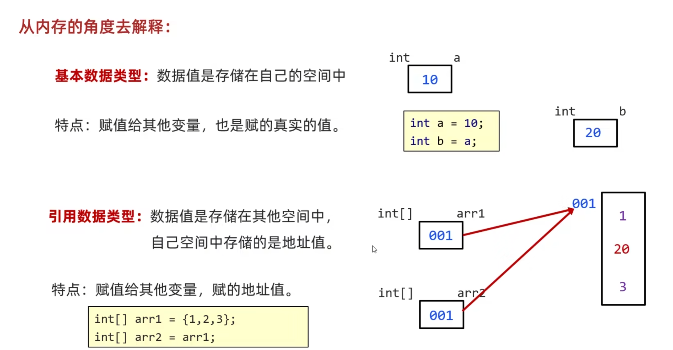 int[] arr2 = arr1; // 把地址复制给 arr2 (arr1 和 arr2 指向同一个数组)