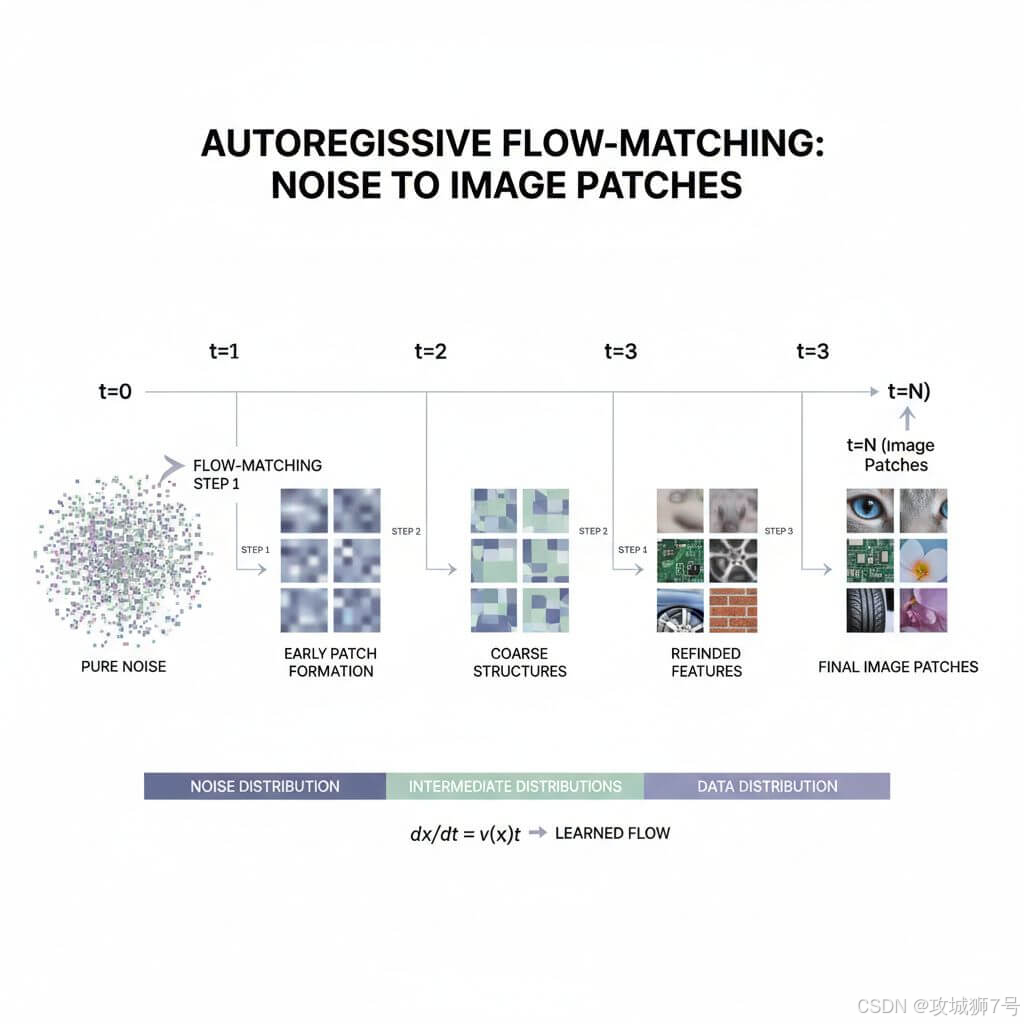 NextStep-1采用了一种很新颖的架构------自回归流匹配(Autoregressive Flow-Matching)。简单来说,它试图用一种模型(Transformer)同时搞定文本和图像,不像传统方法那样,文本归文本,画图归画图(扩散模型)。