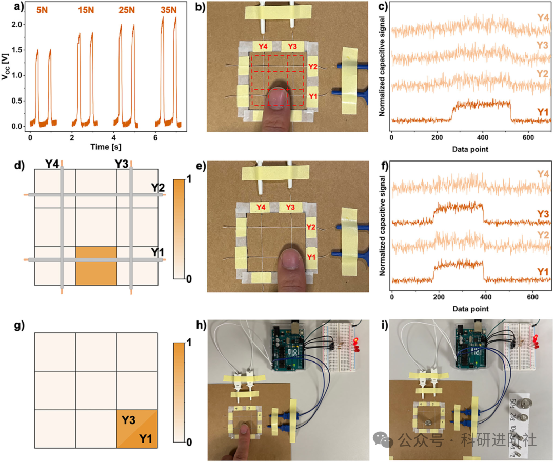 3.灵敏的触觉感知:这种纤维纱线对压力极为敏感,可检测低至0.1N的微小力。研究人员将其编织成3x3的传感阵列,能精准定位触摸位置并量化按压力度,为智能织物实现手势识别、健康监测等功能奠定了基础。