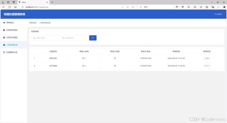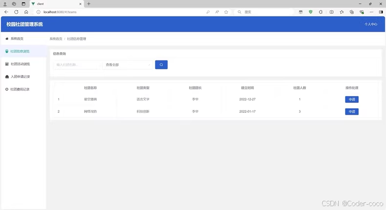 基于springboot + vue校园社团系统