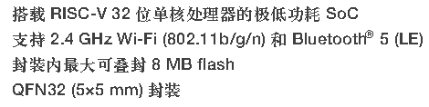 - 单核 160 MHz:483.27 CoreMark;3.02 CoreMark/MHz