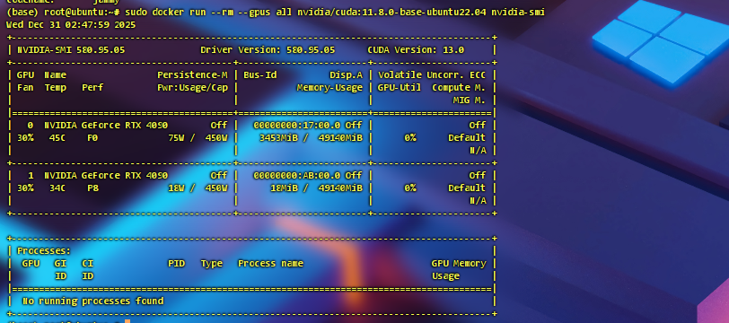 预期输出:包含宿主机 GPU 型号、CUDA 版本等信息(如 RTX 3090 + CUDA 12.2)。