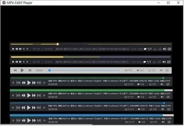6、播放控制界面(OSC)可以显示各种有用的数据。MPV的OSC中默认只能看到文件名,甚至连音量的值都没有,而在MPV-EASY Player中:音量、是否启用硬解、字幕、音轨、分辨率、声道等各种有用的数据都可以随意增减和看到。