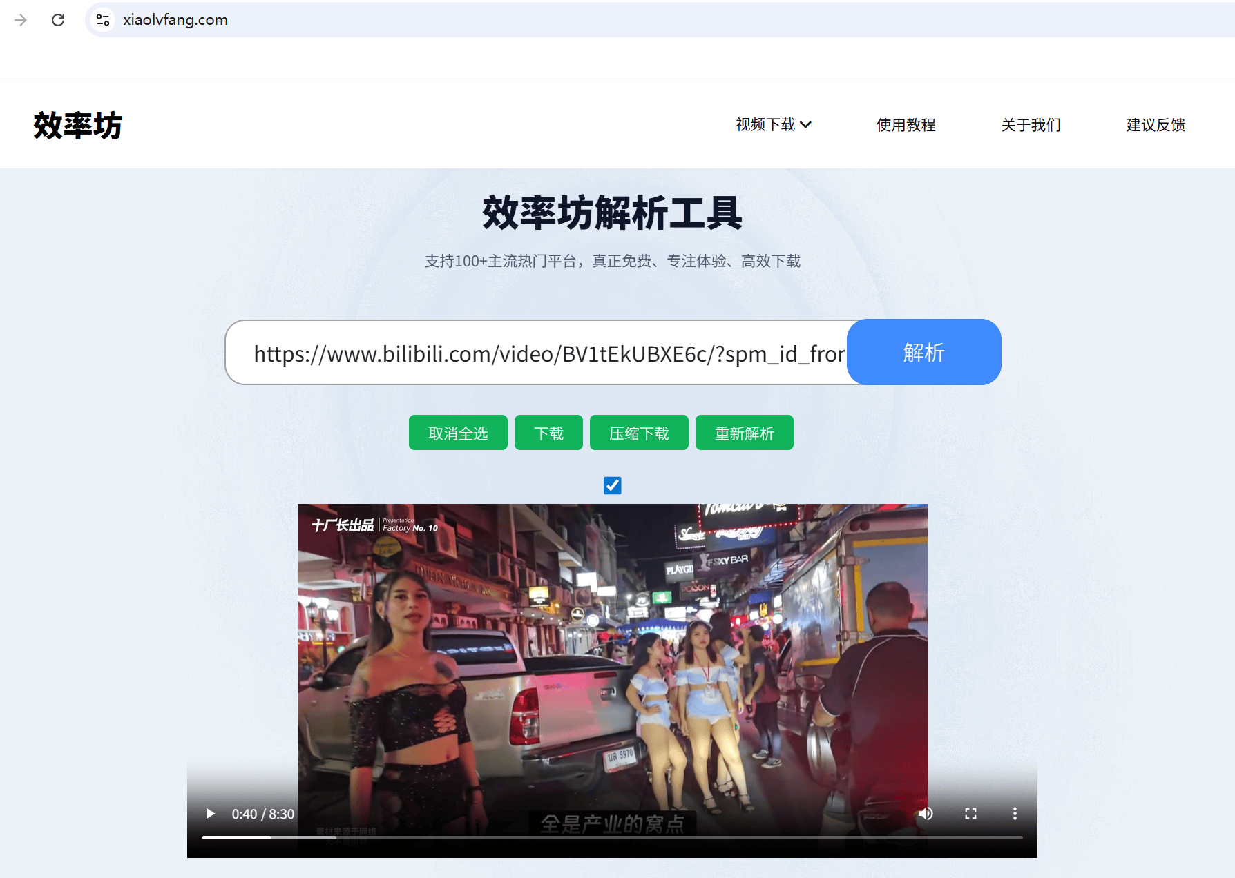 如果你不想安装任何软件,也不想研究什么路径,那么"解析网站"就是为你准备的。这类网站层出不穷,你只需要搜索"效率坊解析工具"。