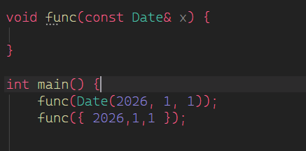 void func(const std::initializer_list<Date>&l) {