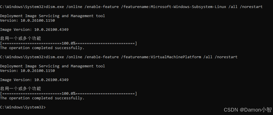 dism.exe /online /enable-feature /featurename:VirtualMachinePlatform /all /norestart