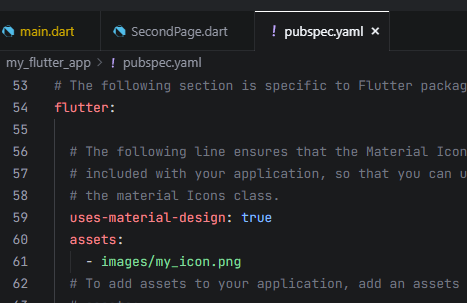 接下来,你需要在你的 pubspec.yaml 文件中声明这些图片: