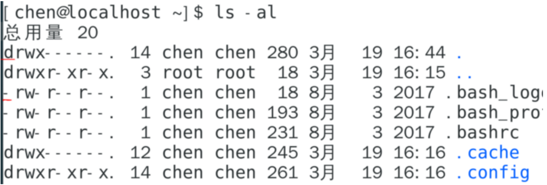 3.查看当前目录下的文件、目录:ls