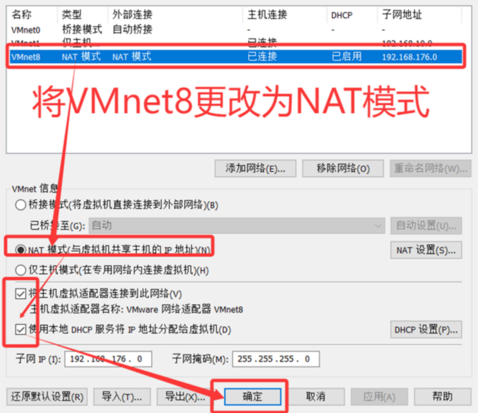 - 打开虚拟网络编辑器,添加NAT模式