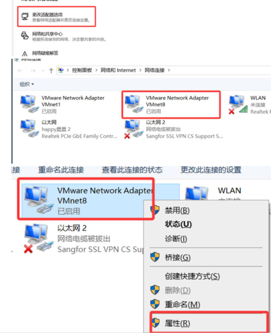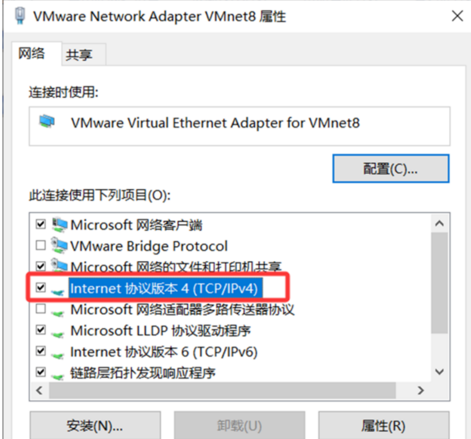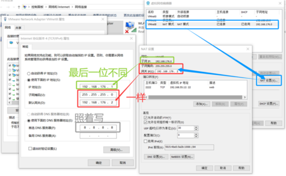 - 设置宿主机VMnet8的ip、子网掩码、网关、DNS服务ip等网络信息