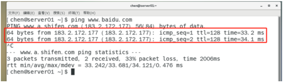 测试:①ping www.baidu.com